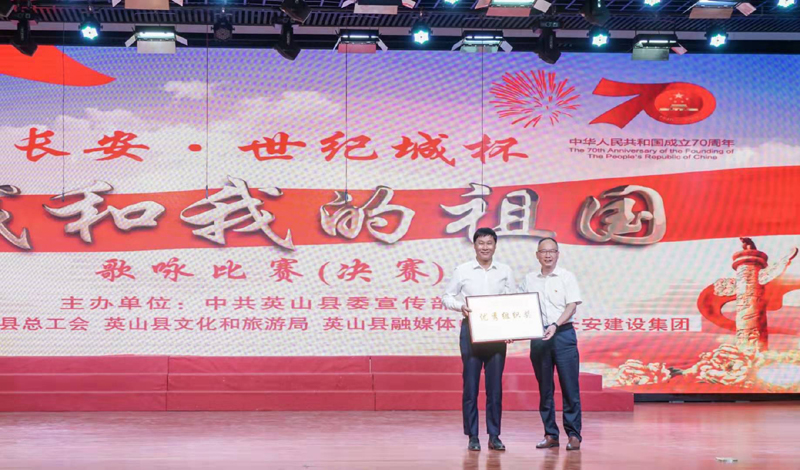 在集團高管領(lǐng)導(dǎo)的關(guān)懷和重視下,在各位員工加班加點的勤學(xué)苦練下,集團大合唱《長江之歌》在全縣22支隊伍中,脫穎而出,喜獲佳績。英山縣委常委、宣傳部長盧峰親自為集團董事長段衛(wèi)昌頒發(fā)“優(yōu)秀組織獎”。
